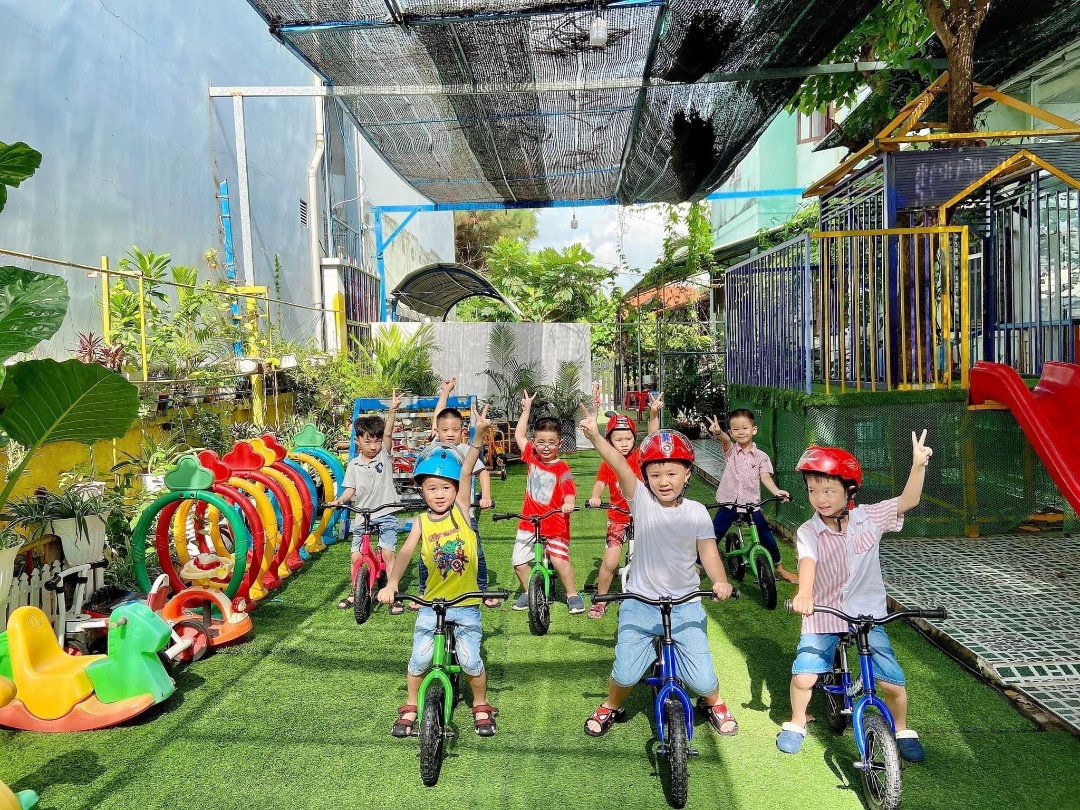 Trường có đội ngũ giáo viên bảo mẫu có nghiệp vụ cùng với khuôn viên đẹp cho các bé vui chơi sinh hoạt